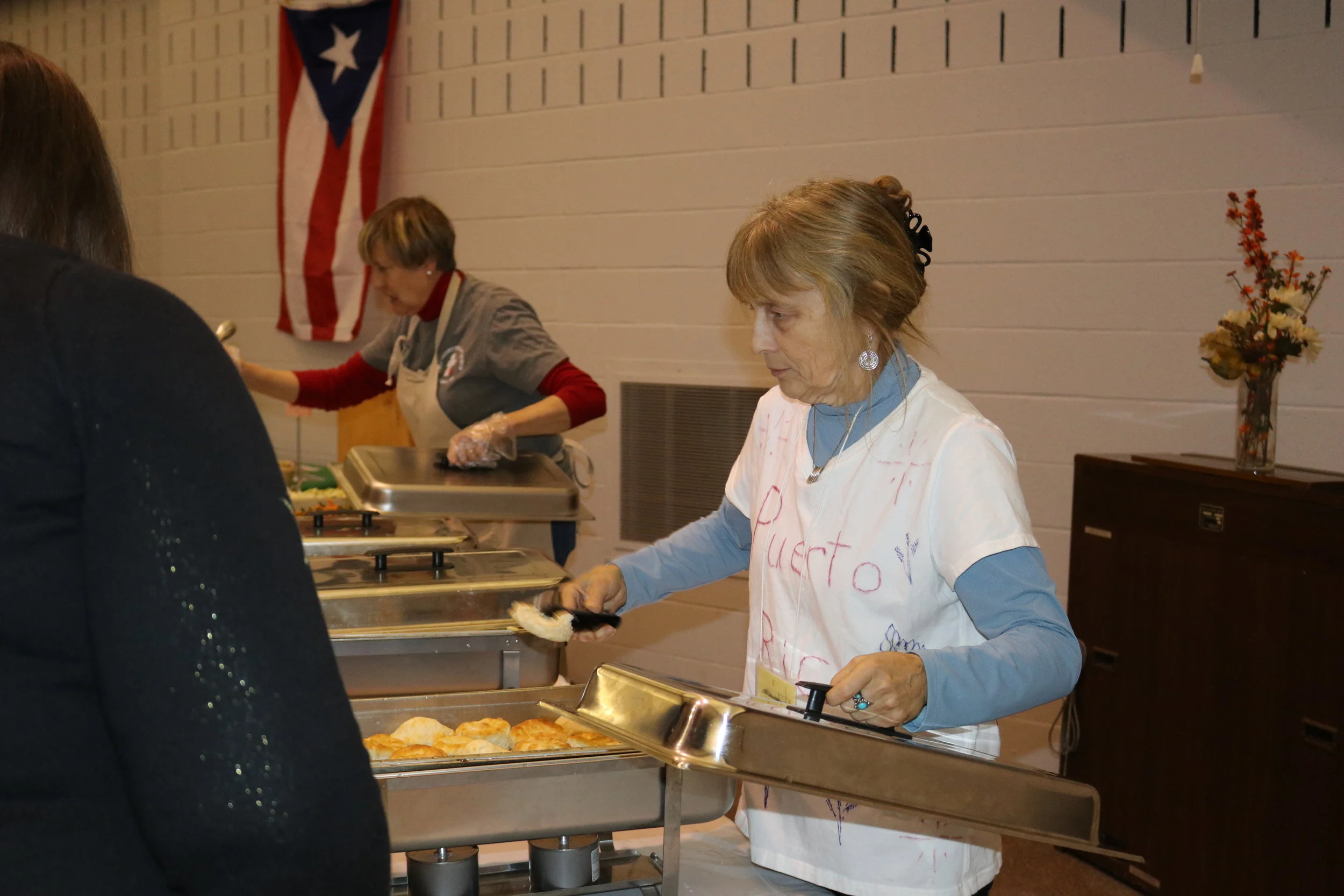 Early arrivals for the chicken and biscuit dinner were Nadir and Joan Figueroa, whose 15th floor apartment in San Juan suffered water damage when their hurricane shutters proved inadequate against Maria’s winds. Joan’s sister lives a short walk from First Church and has offered them sanctuary while they wait. A steady stream of well-wishers in both Spanish and English flowed by their table, and the couple seemed deeply moved by what this community, itself hard-hit by job losses and a fractured economy, was doing for their fellow islanders.