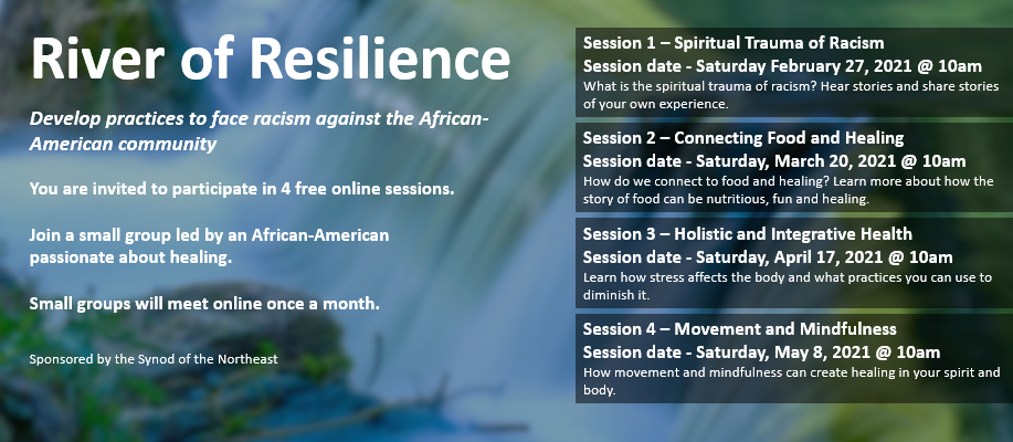 Thanks to the Robert Washington Scholar program I was able to take part in Duke Divinity School’s Foundations on Christian Leadership. We were invited to apply for a grant to address a need. After seeing millions of people march demanding justice for African-Americans who died during police custody and violence I kept sensing a hunger for something different. Many people of color endure the trauma of racism in their bodies, minds, and spirits. For hundreds of years, we have developed strategies to deal with the overwhelming realities of racism. I’d like to help African-Americans learn healing practices. The church should not stay silent in a time when we need to hear about God’s healing spirit. River of Resilience aims to provide tools, space to process, and practices to develop this resilience. Any African-American 25 years or older is invited to attend.