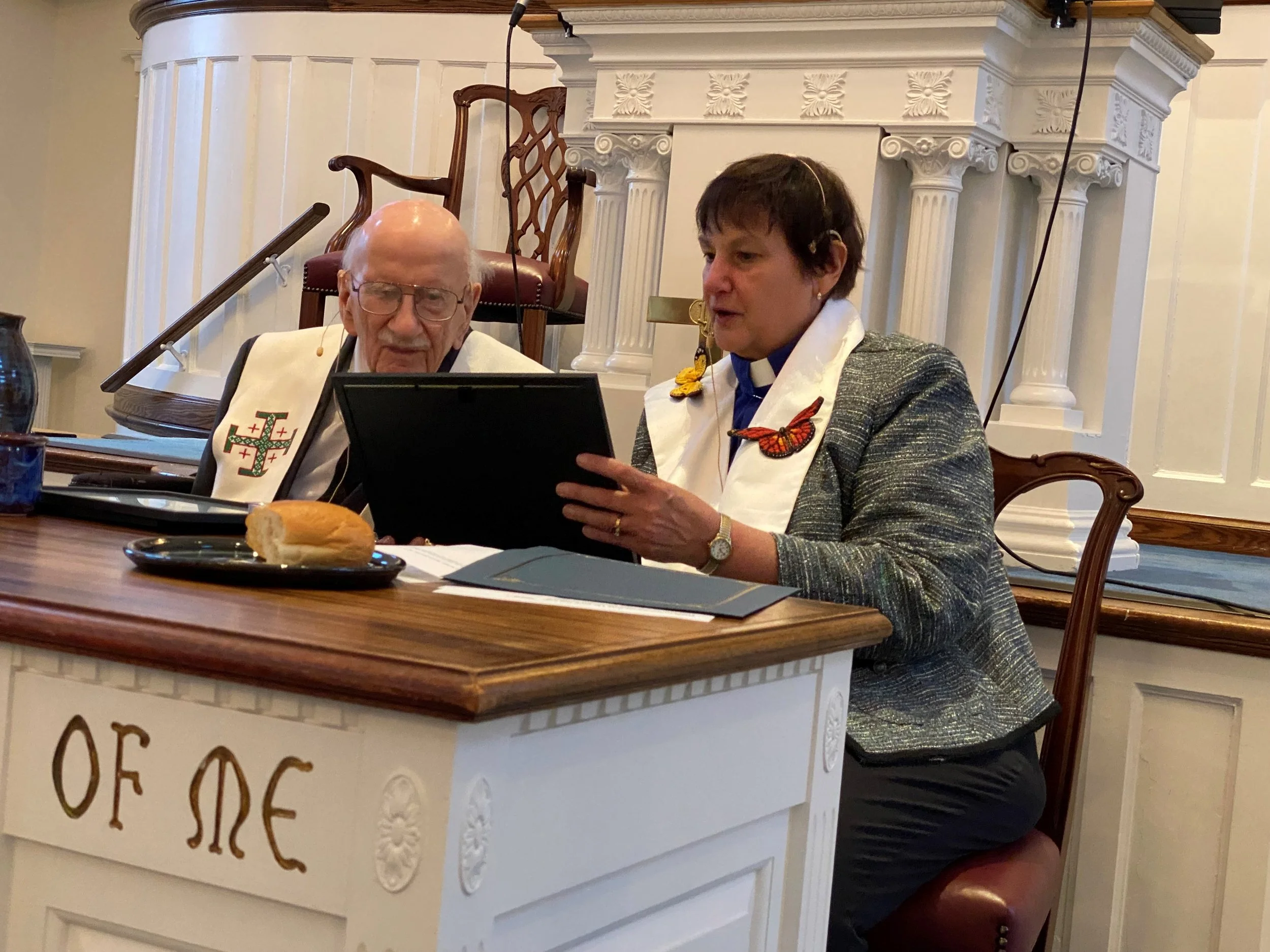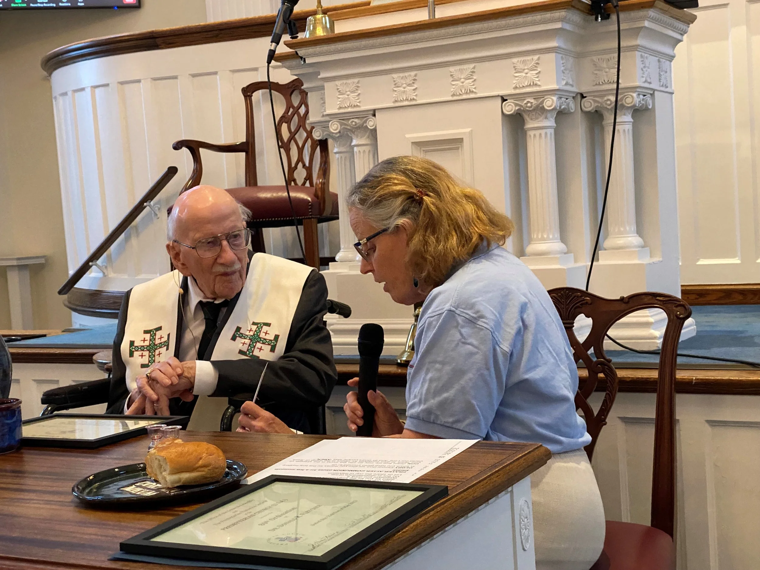 Rev. Don Fletcher 104 years old and ordained for 80 years administers Communion on Tuesday at the Presbytery for Southern New Jersey Presbytery Meetings.