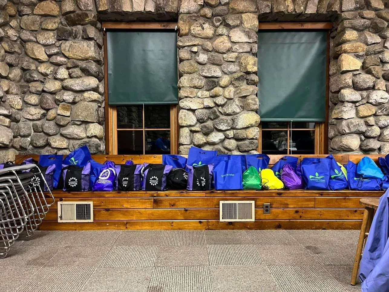 Before Come to the Table officially opened several people came to assist with a mission project of filling blessing bags with articles to share with people who are unhoused. The synod had reached out to presbyteries, churches and individuals asking them to send items which included hand warmers, hats, and gloves as we approach winter as well as toiletry items for men and women. At the initial worship service Rev. Stephen Park Choi, Synod Moderator, blessed 160 bags and commissioned them for dispersal across the synod. We wish to raise a particular thanks to the Foundations Recovery Community Center located in Nanuet, NY that provided 60 bags full of a variety of items needed by those who do not have housing security. As we left Silver Bay, attendees took bags to share across the Synod. Pictures show the distribution of some of these bags.
