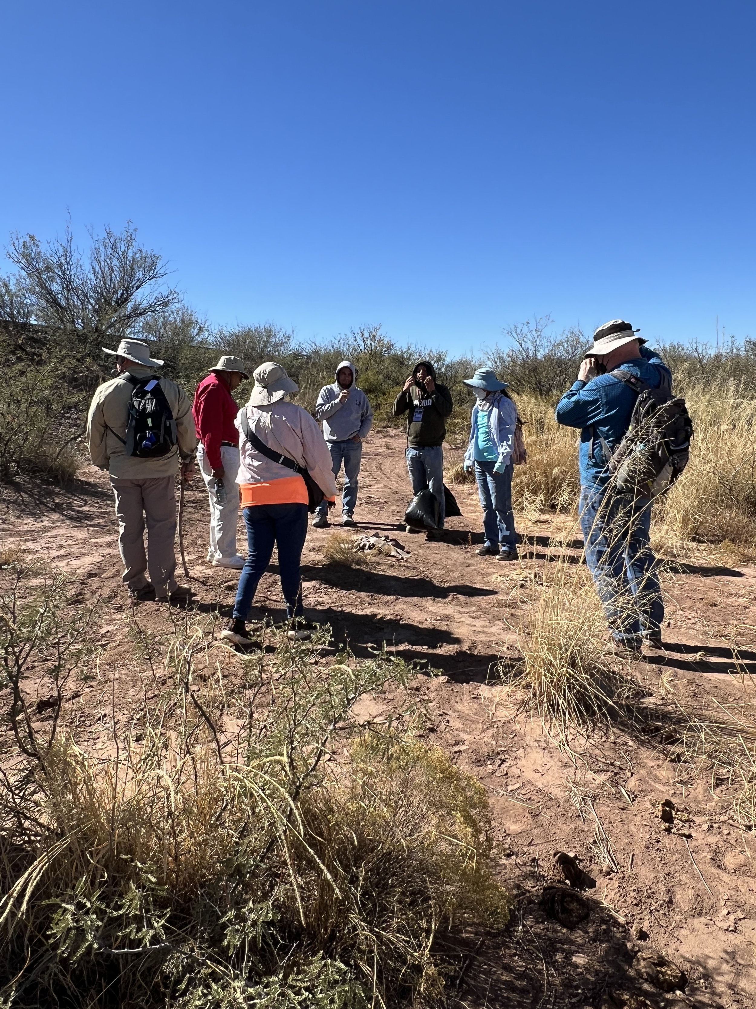 The terrain was unrelenting—a harsh desert filled with thorny bushes, treacherous ditches, cow patties, and an ever-present sense of danger. Our guides reminded us that we were under watch, not only by border patrol but also by organized crime. Advances in technology meant that even from afar, those watching could identify our group’s movements, even down to the color of our eyes.