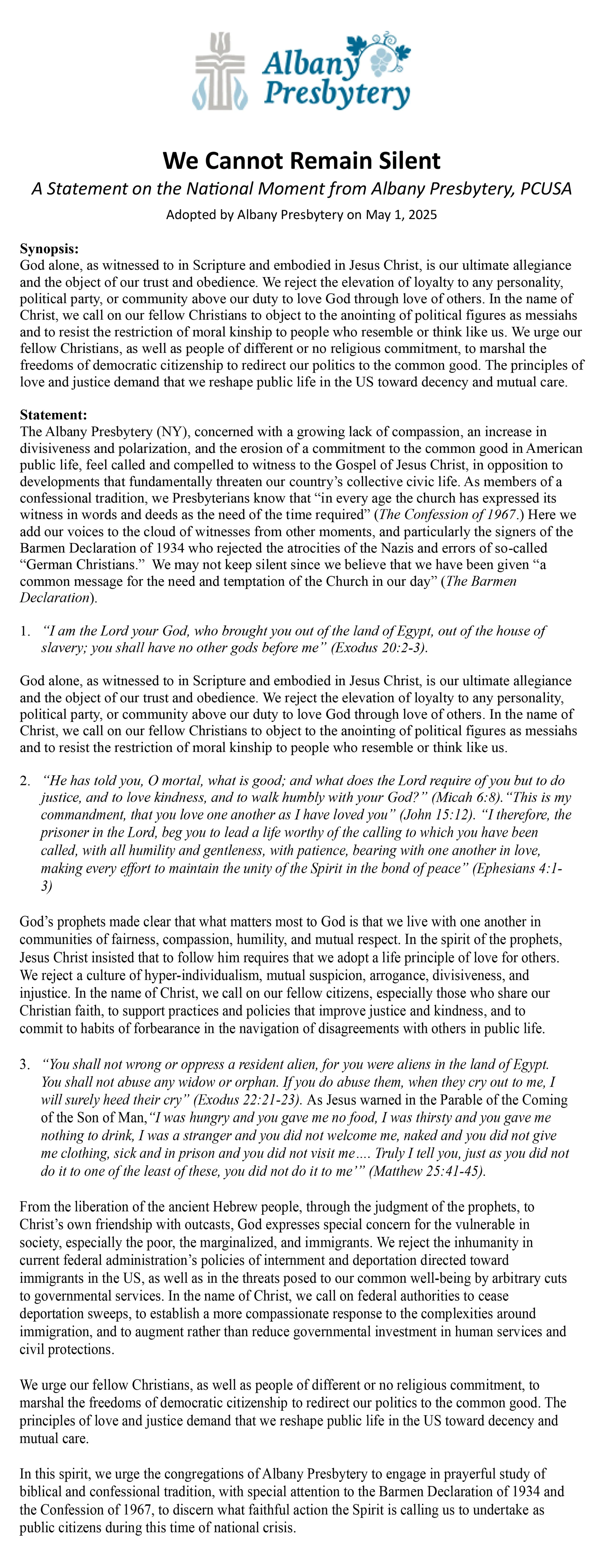 Newsletter A Statement on the National Moment from Albany Presbytery Read More » September 30, 2025 No Comments