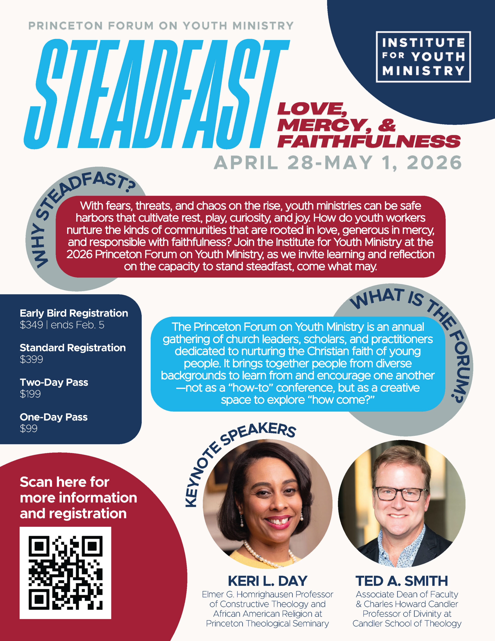 With fears, threats, and chaos on the rise, youth ministries can be safe harbors that cultivate rest, play, curiosity, and joy. How do youth workers nurture the kinds of communities that are rooted in love, generous in mercy, and responsible with faithfulness? Join the Institute for Youth Ministry at the 2026 Princeton Forum on Youth Ministry, as we invite learning and reflection on the capacity to stand steadfast, come what may.